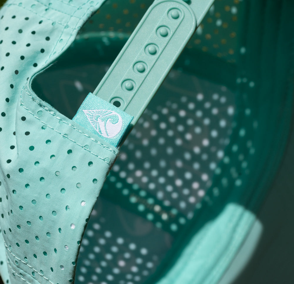 Stay cool and stylish with the Hula Diver Hydro Hat. Made with water resistant performance fabric, this fresh teal color hat features our hula diver design on a woven patch and laser perforated mesh for ventilation and comfort on hot summer days.