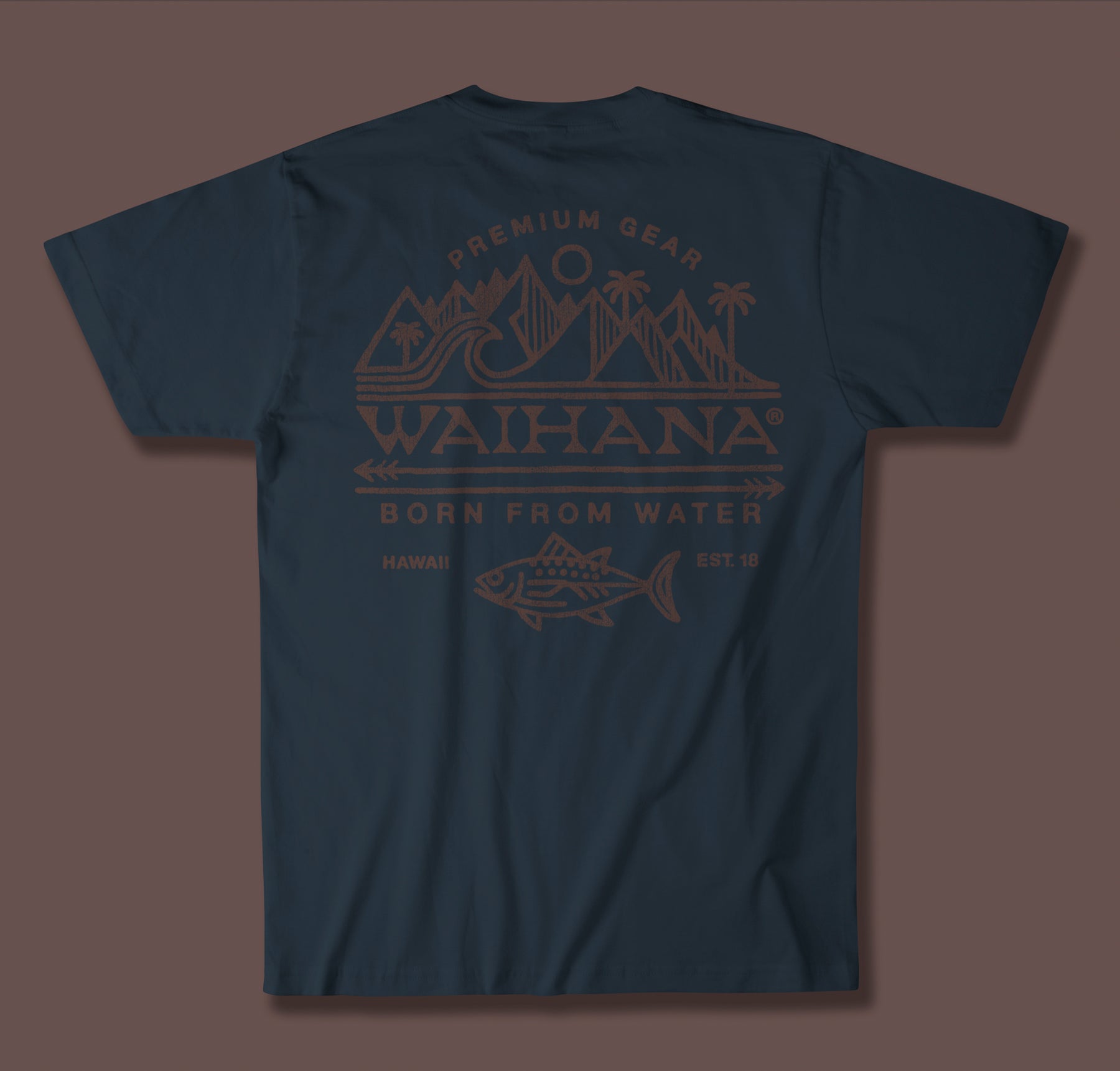 From mountain to sea — Mauka to Makai captures the timeless flow of life in Hawai‘i. This back graphic traces the journey from volcanic ridgelines to ocean depths in a bold line-art style, honoring the sacred connection between land and water.
