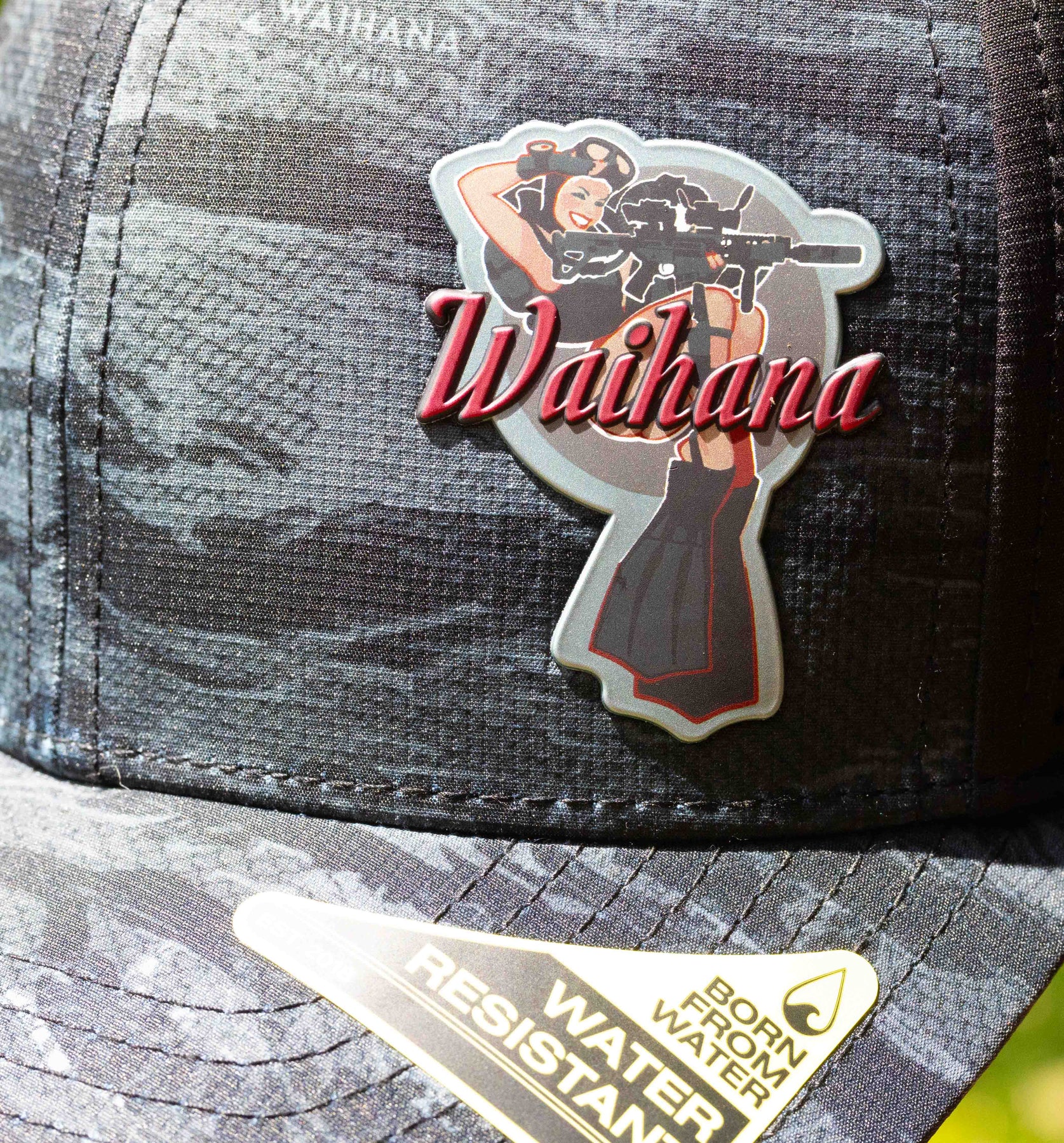 Indulge in your spirit of exploration with our Tropicam Black Hat. Perfect for all your maritime adventures, it is made of water-resistant performance fabric and perforated mesh in the back for ultimate comfort and practicality. Featuring no top pin to obstruct hearing protection. Adorned with a military diver patch, this hat is the epitome of sophistication and utility.